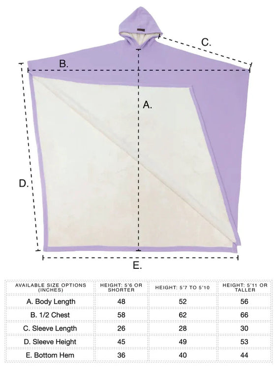 Our unisex one-size-fits-most design drapes below the knees. If it’s not right, return within 30 days.